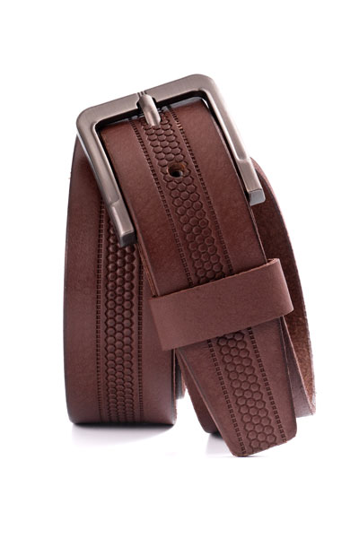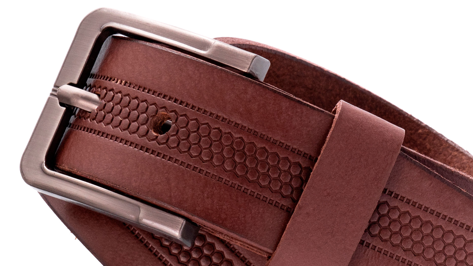 Cinturón casual confeccionado en 100% cuero de alta calidad, ofreciendo durabilidad y estilo en una sola pieza. Su tono café se complementa con un grabado geométrico central, que le aporta textura, carácter y un toque distintivo a cualquier atuendo.